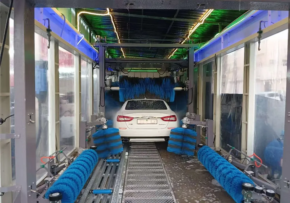 The car wash tunnel system with 14 car brushes is suitable for washing sedans, jeeps, minibuses with up to 10 seats, and other vehicles. The conveyor tunnel car system features a PLC fully-automatic computer control system to improve security. 4 powerful dryers are equipped to quickly dry the washed and wet vehicles.